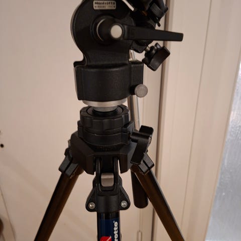 Manfrotto 290 MT293A3 kamerastativ i svart. Trefot med justerbare benseksjoner og gummiføtter for stabil plassering på ulike underlag. Stativet har midtsøyle for høydejustering og panoreringshode med håndtak for presis posisjonering av kamera. Innebygde vaterglass hjelper med å få horisonten rett ved fotografering og videoopptak. Passer til kameraer med kompatibel stativplate og standard stativgjenge (ikke inkludert hvis den ikke følger med på bildene). Egnet til foto og video både inne og ute.