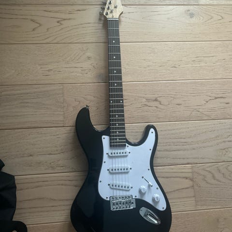 Stagg elektrisk gitar i svart finish.