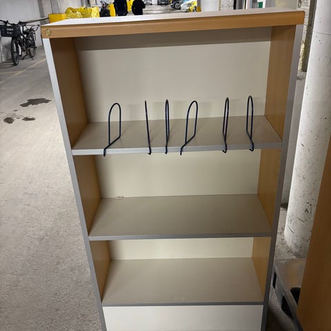 Bokhylle i tre med brun overflate. Hyllen har tre åpne hyllenivåer og en enkel, rett design. Egner seg til oppbevaring av bøker, permer eller dekor i stue, kontor eller gang. Passer inntil vegg eller i et hjørne der det er behov for ekstra oppbevaringsplass. Bredde:60 cm. Høyde:125 cm. Dybde:27 cm.