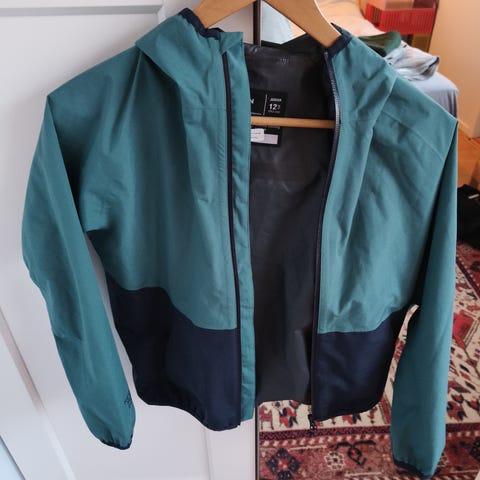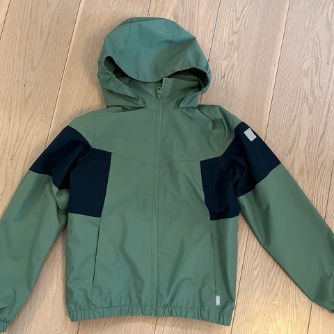 Pent brukt allværsjakke uten merker, slitasje. Nydelig grønnfarge som passer både gutt og jente
