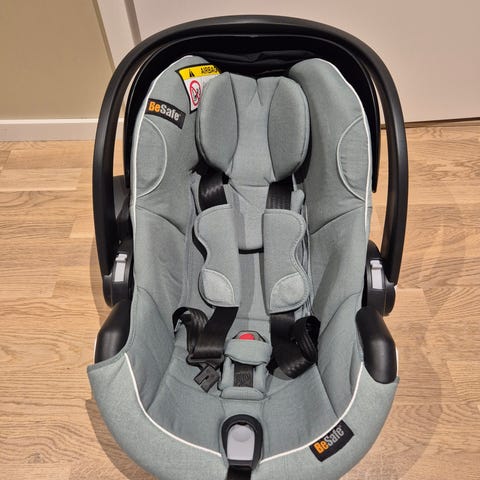 Selger et barnesete som er brukt til to barn (Nyfødt til circa ett år). Base med ISOFIX følger med, men setet kan også festes med bilens sikkerhetsbelte. Trekket kan tas av og vaskes. Nyfødtinnlegg er inkludert.