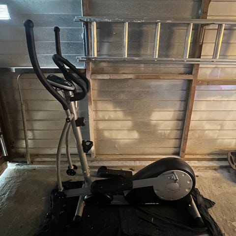 Ellipsemaskin gis bort mot henting. Defekt skjerm. Men alt ellers fungerer.
