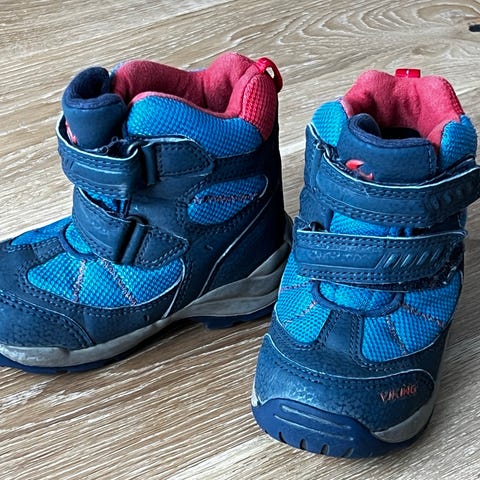 Viking vinterstøvler i størrelse 23.. Støvlene har høy skaft og grov såle som gir godt grep. Innvendig er de fôret for økt komfort og varme. Egnet til bruk i vått og kjølig vær for barn i aktuell skostørrelse.