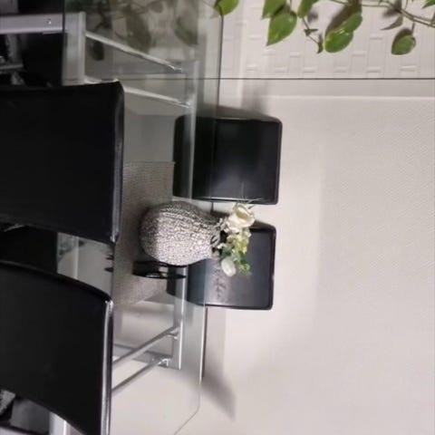 Salongbord med bordplate i glass og underhylle i mørk plate. Bordet har ben i metall med sylinderform. Målene på bordplaten er ca. 135 x 75 cm, og høyden er ca. 50 cm. Passer som sofabord i stue eller oppholdsrom, med ekstra lagringsplass på underhyllen for bøker, fjernkontroller eller annet tilbehør.