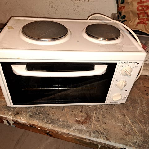Wilfa hybelkomfyr med to kokeplater på toppen og integrert stekeovn.