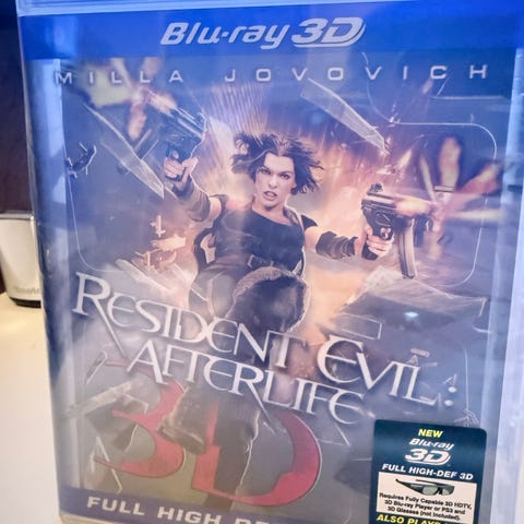Resident Evil: Afterlife Blu-ray film. Action- og skrekkfilm utgitt på Blu-ray-format i plastetui. Filmen følger universet fra Resident Evil-serien og er tekstet og dubbet etter standard utgivelse for dette formatet. Egnet for avspilling på Blu-ray-spillere som støtter regionen angitt på omslaget. Aldersgrense og tekniske spesifikasjoner som spilletid, lyd- og bildeformater står oppført på baksiden av coveret.