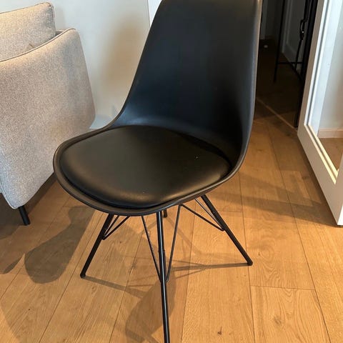 Sorte ben i stål, plast med kunstskinn. Lett å holde rene. Må hentes på Risvollan.