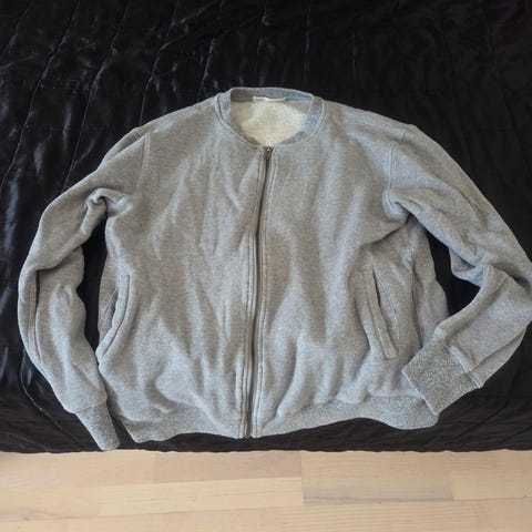 Jack & Jones cardigan for herre i størrelse M. Plagget er beige og har glidelås i front. Langermet modell som passer godt til hverdagsbruk eller som et ekstra lag. Materiale er ikke oppgitt på lappen i annonsen, men fremstår som en myk og behagelig strikket kvalitet.