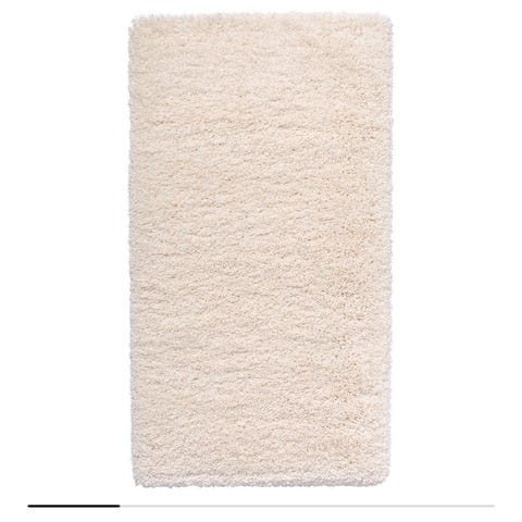 IKEA teppe med langhåret luv i beige farge. Rektangulær form som passer på stuegulv, soverom eller andre oppholdsrom. Myk overflate som gir et komfortabelt underlag ved gange og sitting.