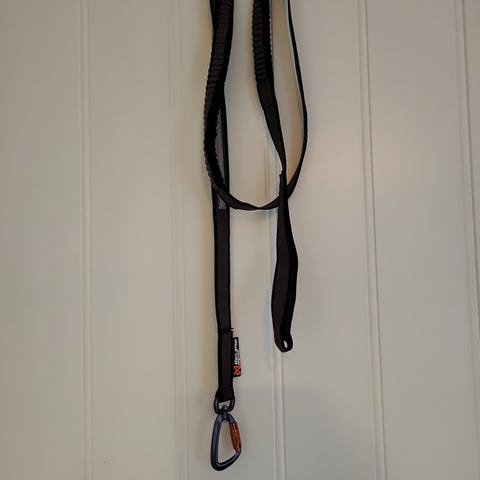 Non-stop Dogwear hundekobbel i svart nylon med polstret del og solid karabinkrok med skrulås. Kobbelet har refleksdetaljer for bedre synlighet i mørket. Egnet til bruk på tur og hverdagsbruk med hund. 90 cm -120cm. Ubrukt!