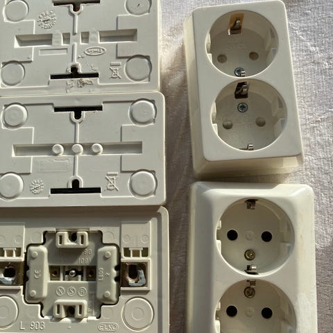 Jeg har byttet deksel på et par ujordet stikkontakter, og har innmaten til overs. Selges billig til de som kunne se gleden av dem.
