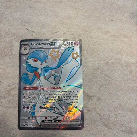 Pokémon Gardevoir EX samlekort i holo-versjon. Kortet viser Gardevoir EX med illustrasjon på forsiden og standard Pokémon-bakside. Egnet for samling eller spill i Pokémon Trading Card Game.