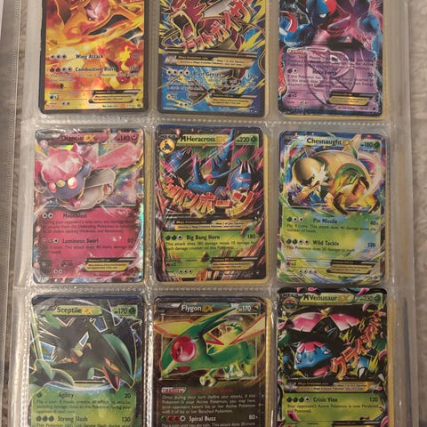 Selger en flott samling Pokémon EX og Mega EX kort og fler i meget god stand.