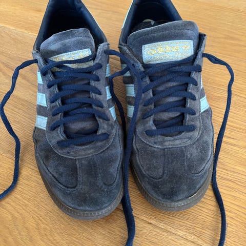 Adidas handball spezial i lys/mørk blå selges da de ikke blir brukt nok.. veldig kule og behagelige sko, lav og litt petit modell (ikke typ chunky sneakers). Litt skitne på sidene men kan enkelt vaskes :))