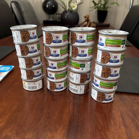 Hill’s Prescription Diet Metabolic våtfôr til katt med kylling. Fôret består av biter i saus med kyllingsmak og kommer i porsjonsposer.