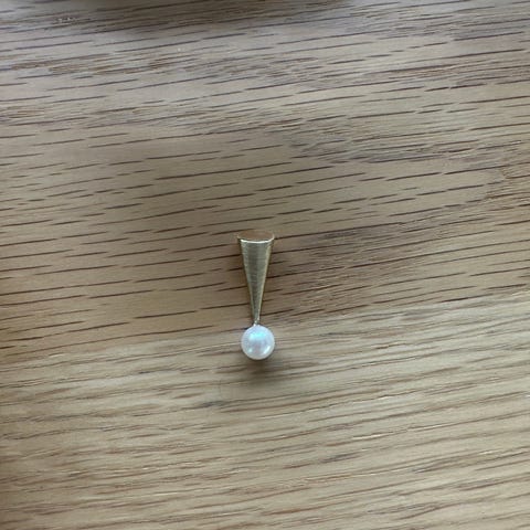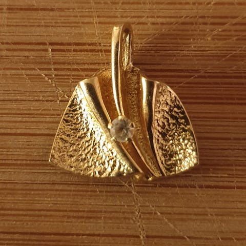 Fint lite anheng med en liten hvit stein, stemplet 585.