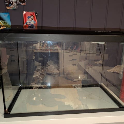 60 L akvarium med filter, lys og varmer.
