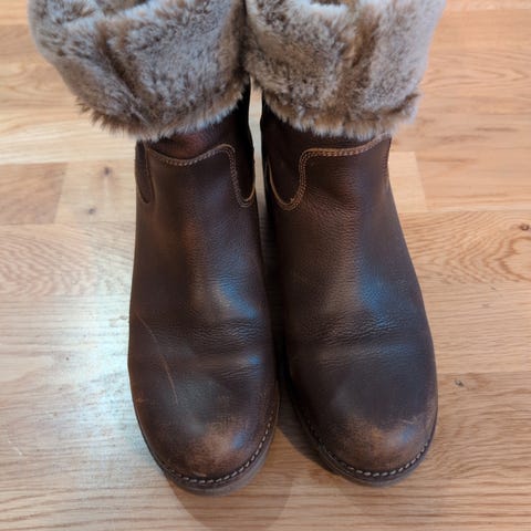 Semskeskinnstøvletter med ekte mårhundpels/raccoonpels. Kilehæl. Disse får man ikke kjøpt lengre. Brukt 1 gang. Ypperlig stand.