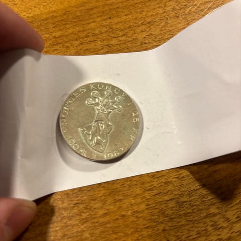 Norges Konge 25 år 100 kroner 1982 minnemynt sølv