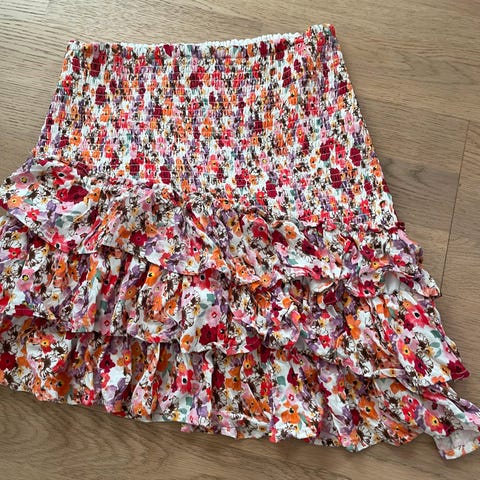 Nydelig blomstrete skjørt fra MAUD med volanger. Str 42. I god stand. Selges fordi det dessverre bare blir liggende ubrukt.
