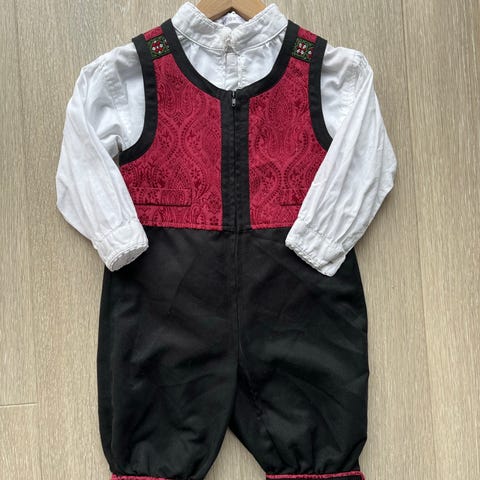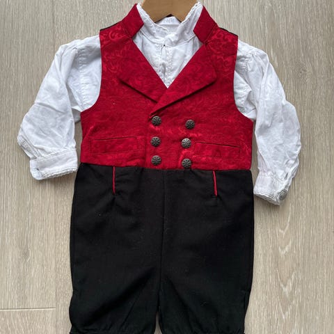 Nydelig festdrakt til gutt str. 86 cm❤️ Skjorten har en svak flekk på brystet som ikke vises når vesten er kneppet igjen, og det mangler en knapp på ene ermet. Buksen og vesten har ingen bruksmerker 😊