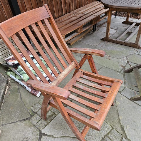Hagemøbler er laget med rustfri aluminiumramme med teak look og flettet rotting.