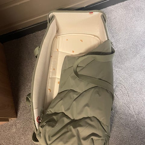 Kjøpt ny juni -25. Brukt i vogn ca 4mnd, alltid brukt laken og teppe over madrassen.