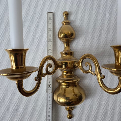 Selger en stor og flott messing lysekrone med plass til levende lys. Klassisk og tung modell med nydelige detaljer.