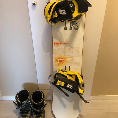 Godt brukt brukt som jeg selv kjøpte her på Finn i fjor. Selges fordi jeg har kjøpt et nytt brett, og bindingene på høyre side av og til fryser til, noe som gjør det vanskelig å bruke dersom det skjer. Se også skade oppe på brettet.