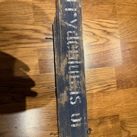 Innrammet informasjon om koier og staller i forbindelse med tømmerhugging. Den er fra 1958. Dokumentet har patinert og flekkete papir som gir et eldre uttrykk. Rammen er enkel med lys trelist og oppheng på baksiden. Egner seg som veggdekorasjon eller som samlerobjekt for den som er interessert.