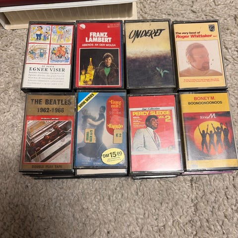 Den ene kofferten er komplette og den andre mangler kassetter.