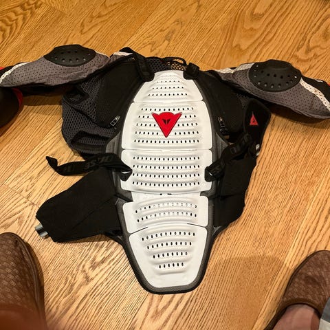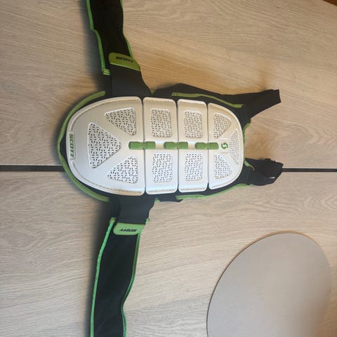 Scott Airflex ryggskinne i størrelse M/L i svart og hvit. Ryggskinnen har fleksible beskyttelsespaneler med ventilasjonshull og justerbare skulderstropper. Bredt midjebelte med borrelås gir stabil passform. Egnet som ryggbeskyttelse til aktiviteter som sykling, ski eller snowboard der ekstra ryggbeskyttelse er ønsket.