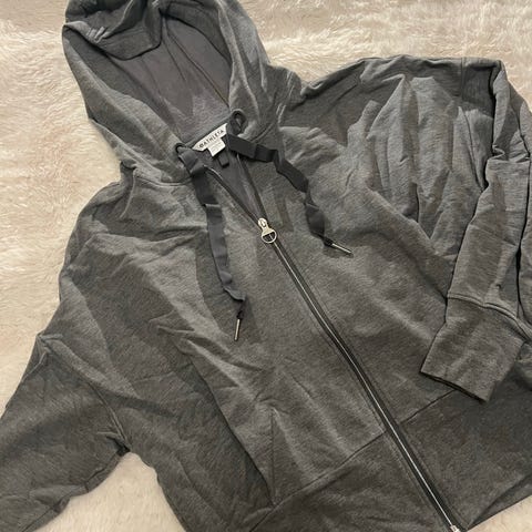 Selger denne sweatjakken fra athleta - str L. Farge svart. Ny. Merkelapp fortsatt på. Laget av utrolig deilig og stretchy/ elastisk materiale. Med tommelhull.