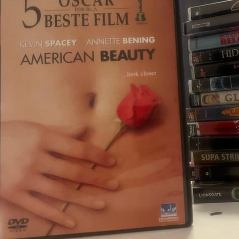 American Beauty DVD film. Utgave av spillefilmen «American Beauty» på DVD-format. Forsiden viser originalt filmomslag. Egnet for avspilling på DVD-spillere som støtter standard DVD-video.