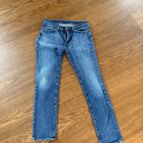 Levi's 511 herrejeans i størrelse L med livvidde W34 og benlengde L32. Buksen er i blå denim og har klassisk femlommers design med glidelås og knapp i front. Passformen er smal, typisk for 511-modellen. Egnet som hverdagsbukse for menn.