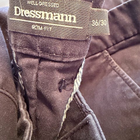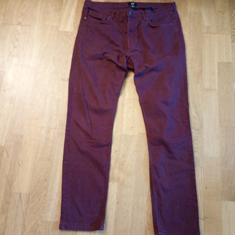 Dressmann chinos i cordfløyel for herre i størrelse M. Buksen er rød og har klassisk chinos-snitt med lommer foran og bak. Materialet er cordfløyel, som gir en myk og strukturert overflate. Passer som hverdagsbukse eller til mer uformelle anledninger.