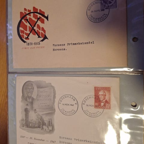 2 konvolutter med vignetter fra VM på ski i Oslo 1982 og VM i skiskyting i Oslo 1986.