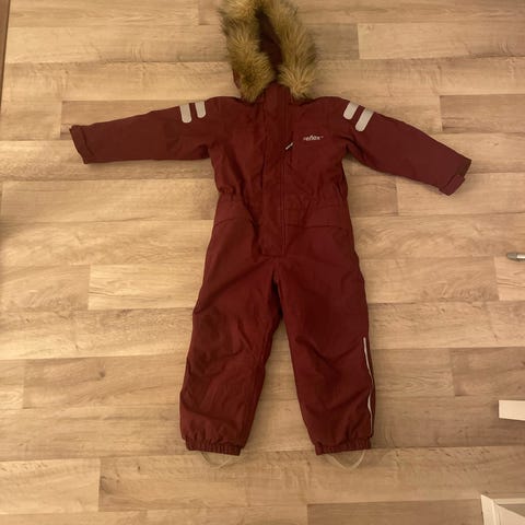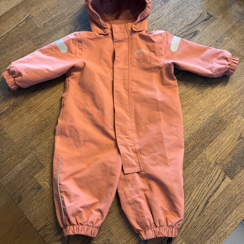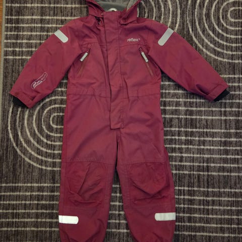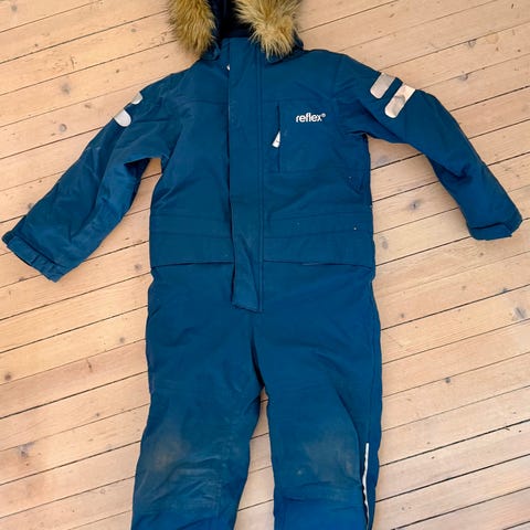 Pent brukt kjeledress. Modellen har hette, elastikk nederst på bena med fotstrikk, samt refleksdetaljer på ermer og ben. Glidelås foran og liten brystlomme med glidelås. Innside med meshfôr i hetten og mykt stoff på innsiden av kragen og overdelen.