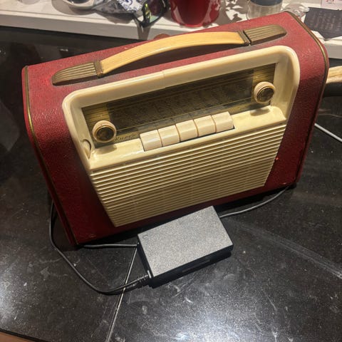 Radionette Kurer Transi vintage radio blå og krem