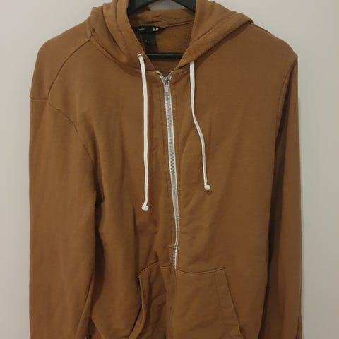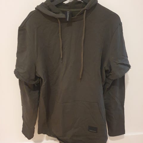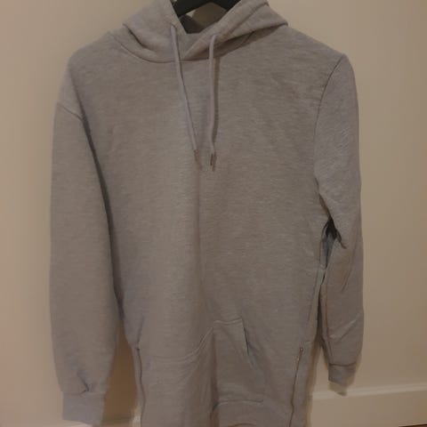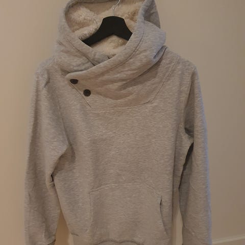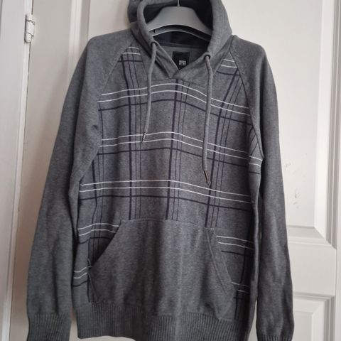 Hettegenser for herre i størrelse M i grå farge. Genseren har hette med snøring og knappelignende detaljer øverst, samt kengurulomme foran. Ermene har ribbestruktur på deler av underarmen. Passer til hverdagsbruk og fritidsaktiviteter.