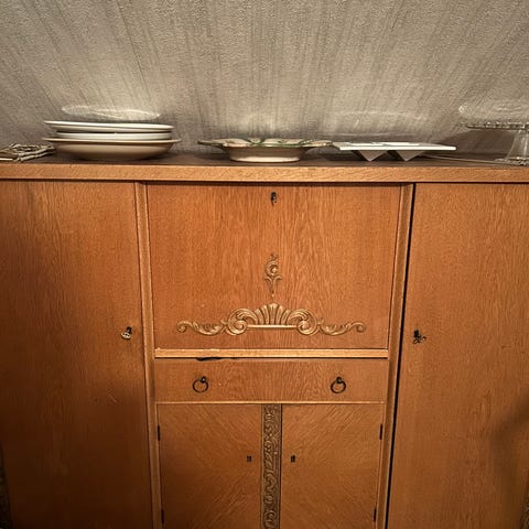 Antikk skap med uttrekkbar hylle gis bort. Må hentes innen kl 17 på onsdag