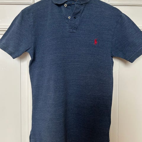 Ralph Lauren Polo pique for herre i størrelse S. Modellen er slim fit med kort erm og klassisk polokrage med knappestolpe. Skjorten er flerfarget med horisontale striper i blant annet marineblått, hvitt, gult, rødt og blått. Materiale i bomull. Egnet som hverdagsplagg eller til uformelle anledninger. Pent brukt.