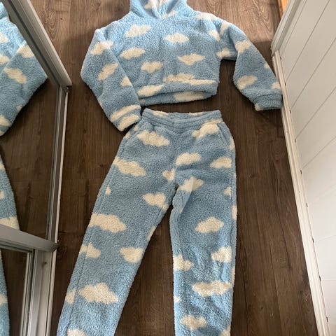 Selger et nytt sett med genser og bukse.