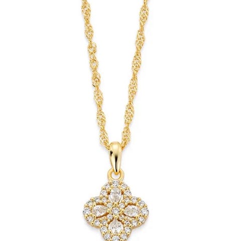 Oppdag tidløs eleganse med dette vakre og detaljrike diamantsmykket i gult gull. Anhenget er prydet med 8 glitrende diamanter med en totalvekt på 0,06 karat. Dette er et stilrent smykke som passer enhver anledning.