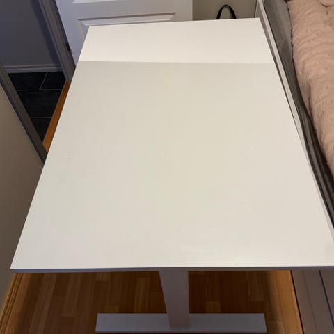 Pent brukt, men ble litt for stort for sønnen min derfor ønsker han å selge. Så han kan kjøpe noe mindre. Kan regulere høyden på bordet, og god plass til ledninger, se bilder