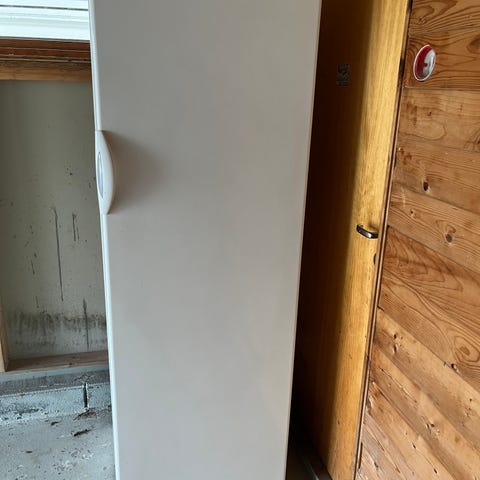 Zanussi fryseskap i hvit utførelse. Frittstående modell med frontdør. Gammel, syntes den fryser noe dårlig.