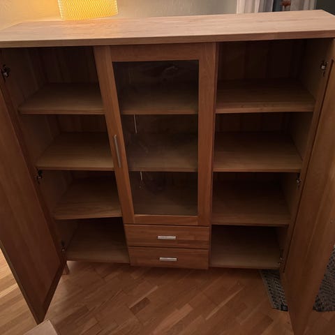 Eikefarget skap fra IKEA. Ser helt nytt ut. Kan ikke se noen merker. Stått på gjesterom som nå skal bli barnerom. Derfor ikke bruk for det lenger.