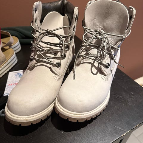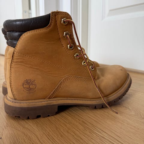 Selger mine Timberland støvletter i størrelse 40 til dame/herre. Synlig brukt, men fremdeles mye bruk igjen. Klassiske ankelhøye støvler i brunt skinn med snøring og kraftig gummisåle. Polstret kant rundt ankelen for økt komfort. Kan sendes eller møtes i Oslo/Bærum. Kan sende flere bilder hvis ønskelig:)