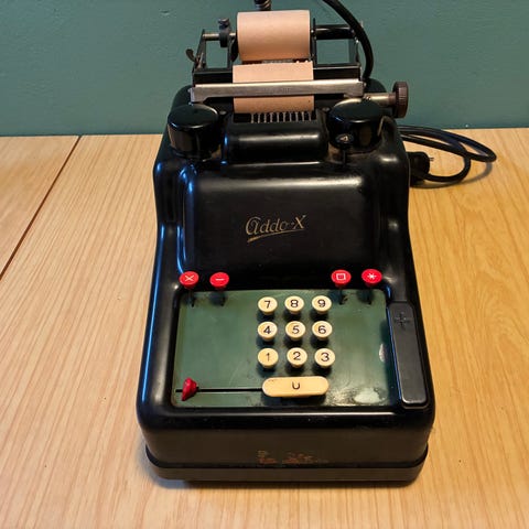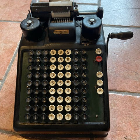 Ifølge serienummeret (794064) er denne maskinen produsert i 1962. Den representerer toppen av mekanisk regneteknologi før de elektroniske kalkulatorene tok over.