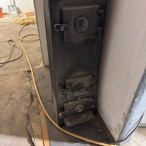 Peisovn med parafin renner (ukjent status) gis bort. Peisen er demontert.